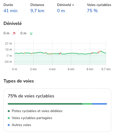 Nous ne voulions pas faire tout le retour à vélo le long d’une route passante, comme le proposait Geovelo. On a donc choisi de passer par les petites routes de campagne, même si elles n’étaient pas toutes aménagées avec des pistes cyclables. Cela ne nous a pas posé de problème : on a croisé très peu de voitures, et le trajet était vraiment agréable.
